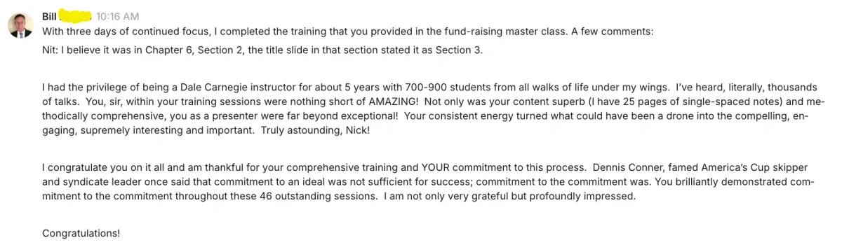 Live weekly sessions with expert advisors (who’ve raised over $1B) to help you review investor convos, tweak your pipeline, and drive results.