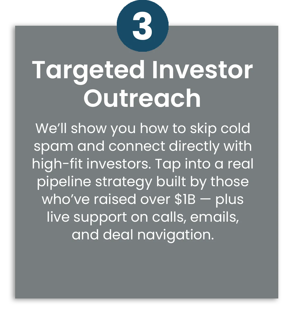 No more “spray and pray.” We help you target 20–30 active investors who fund your space — and teach you how to approach them like a pro.
